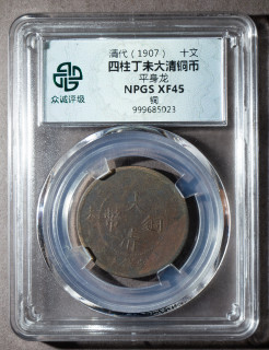 光绪年造丁未大清铜币十文铜币一枚(众诚NPGS XF45)