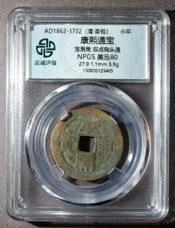 清-康熙通宝宝泉局双点角头通小平1枚(众诚NPGS 美品80)