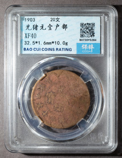户部光绪元宝二十文铜币一枚(保粹CCGA XF40)
