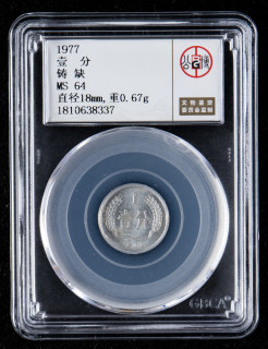 1977年中国硬币壹分一枚(铸缺、公博GBCA MS64)