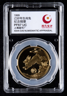上海造币厂1999年兔年生肖纪念章(直径:32mm、现代鉴评 PF67)