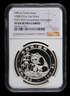 1988年美国钱币协会第97届年会-大熊猫1盎司银章(NGC PF68)