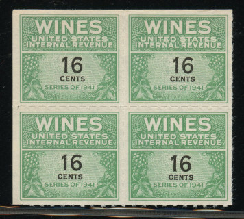 美国1941年葡萄酒税票16c四方连新