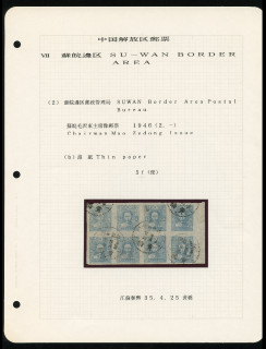 苏皖边区毛像5分薄纸无齿宽边八方连旧(带定位页)