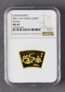 2001年辛巳蛇年生肖1/2盎司扇形普制金币(NGC MS69、带证书)