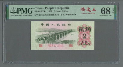 第三版人民币2角红冠3罗马平版(PMG 68EPQ、ⅥⅢⅣ3217363)