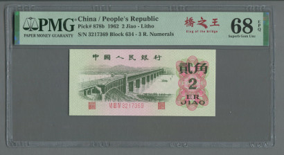 第三版人民币2角红冠3罗马平版(PMG 68EPQ、ⅥⅢⅣ3217369)