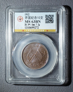 民国开国纪念币十文铜币(公博GBCA MS63BN)