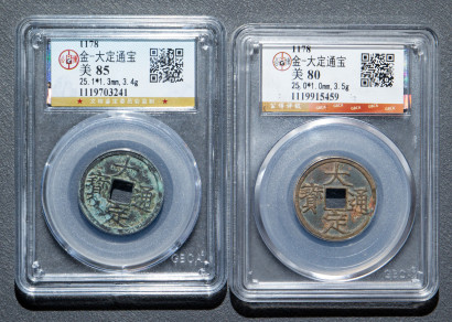 金-大定通宝2枚(公博GBCA 美85、美80)