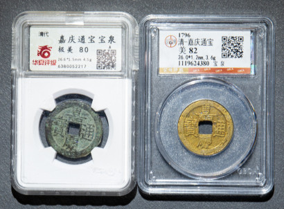 清-嘉庆通宝宝泉2枚(公博GBCA 美82、华夏评级 极美80、部分开放式评级盒)