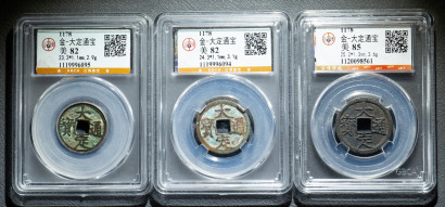 金-大定通宝4枚(公博GBCA 美85、美82、美80、华夏评级 极美80、部分开放式评级盒)