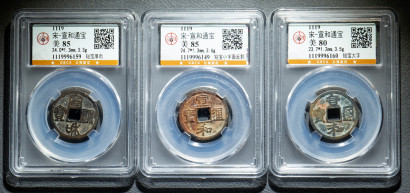 宋-宣和通宝短宝厚肉、短宝大字、短宝小字面反郭各1枚,共3枚(公博GBCA 美85、美80)
