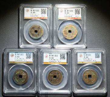 清-康熙通宝5枚(公博GBCA 美85、美82、美80)