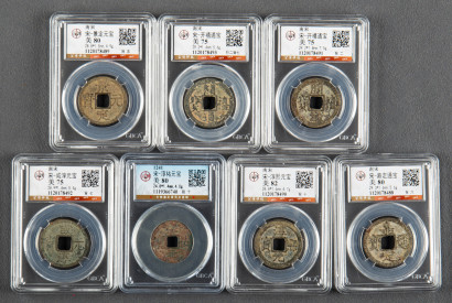南宋-嘉定通宝背六、景定元宝背五、淳熙元宝背十、咸淳元宝背七、开禧通宝背二、折二背七、淳祐元宝背十各1枚,共7枚(公博GBCA 美82、美80、美75)