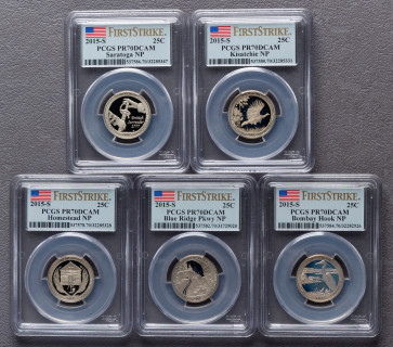 2015年美国国家公园纪念币五枚(PCGS PR70、S版、初打标)