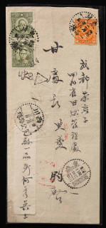 1942年东川经重庆寄西川封、贴民孙像8分双连一件、烈士像4角一枚、销2月25日东川一品场戳、2月26日重庆中转戳、3月3日西川公路场落戳