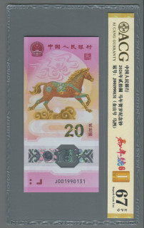 2026年马年生肖纪念钞20元(爱藏ACG 67EPQ、首日发行、J001990131)